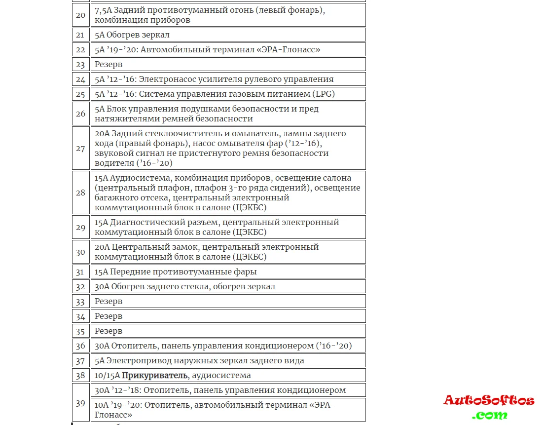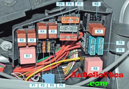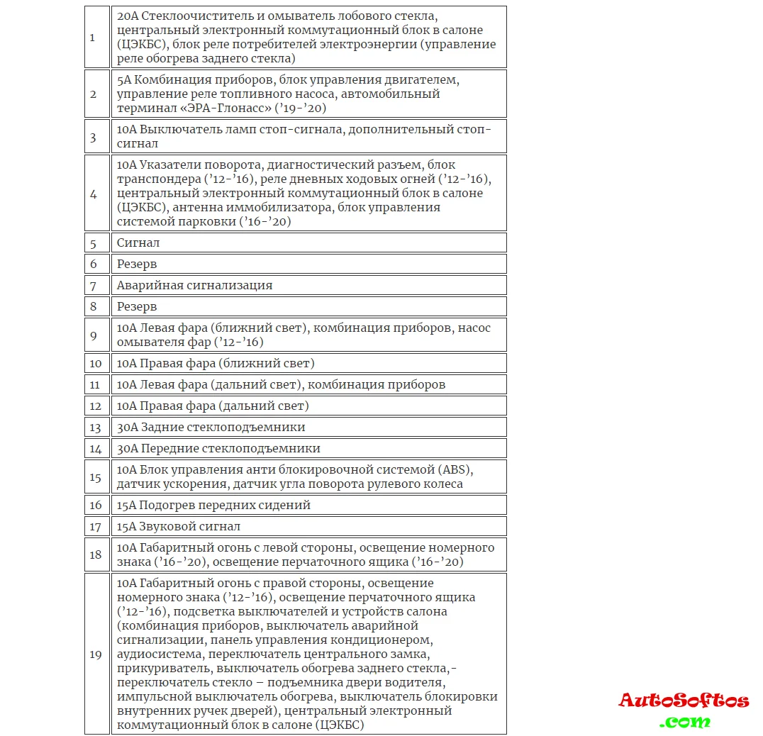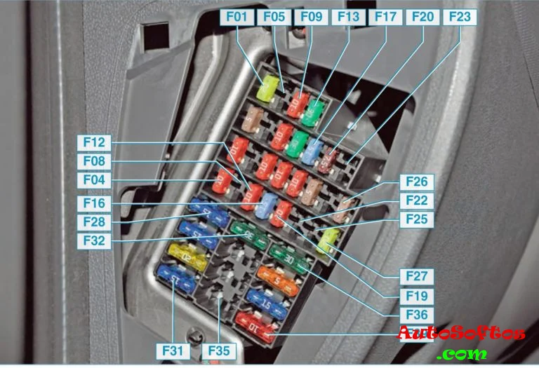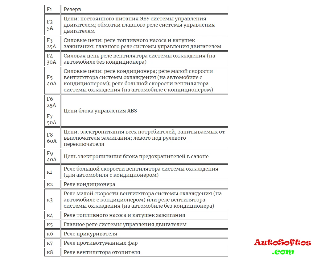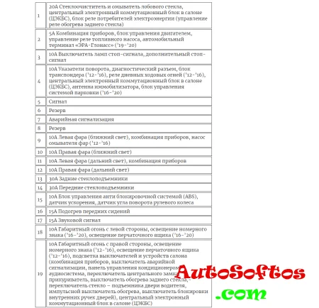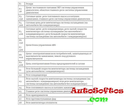 С обратной стороны защитной крышки, на некоторых моделях, будет нанесена актуальная схема назначения предохранителей.
